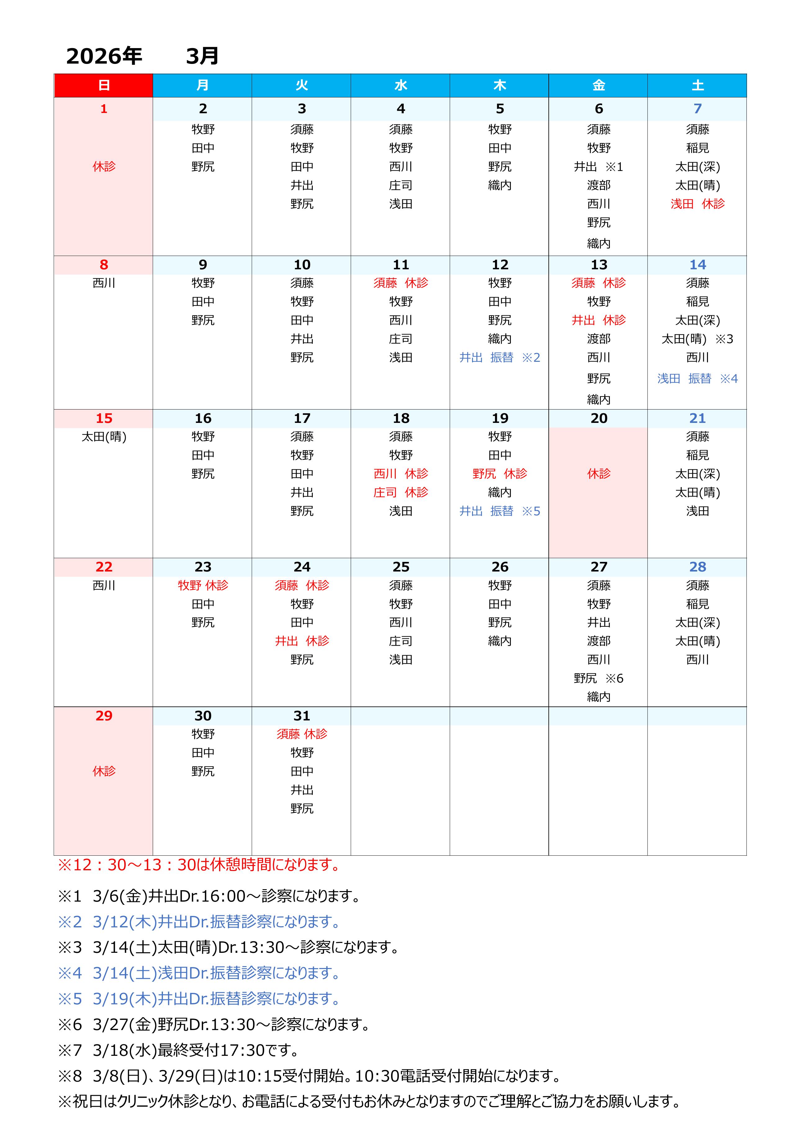 祝日はクリニックお休みとなり、お電話による受付もお休みとなりますのでご理解とご協力をお願い致します。